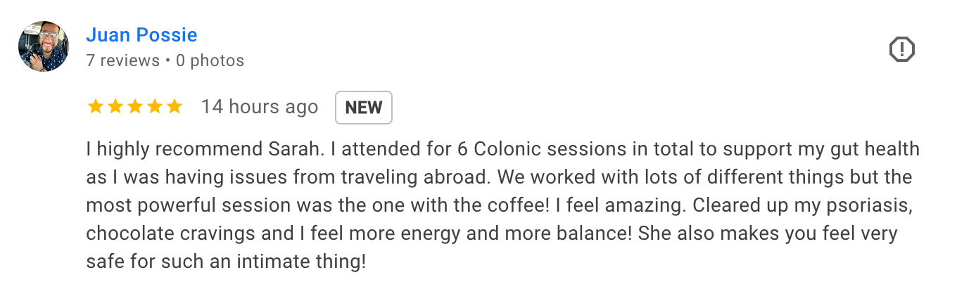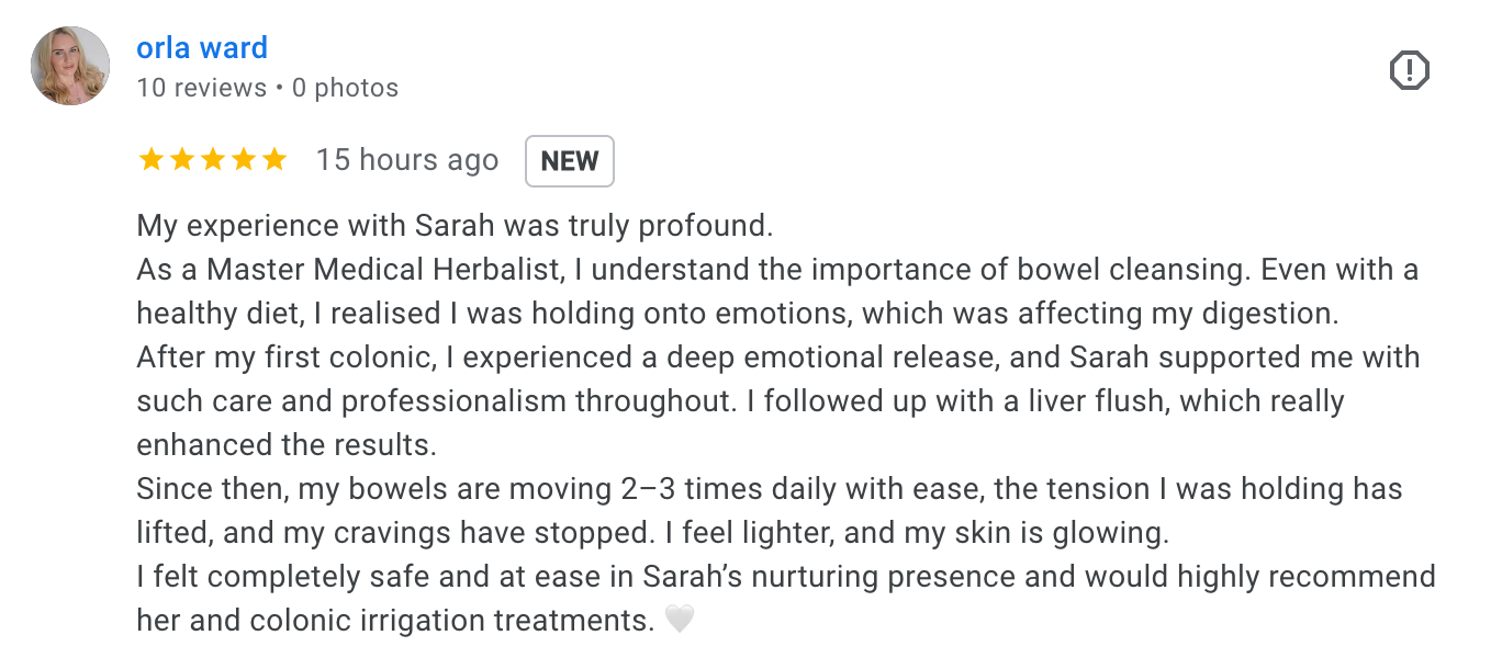 90-minute colonic hydrotherapy and consultation for digestive support, bloating, constipation, and gut health.